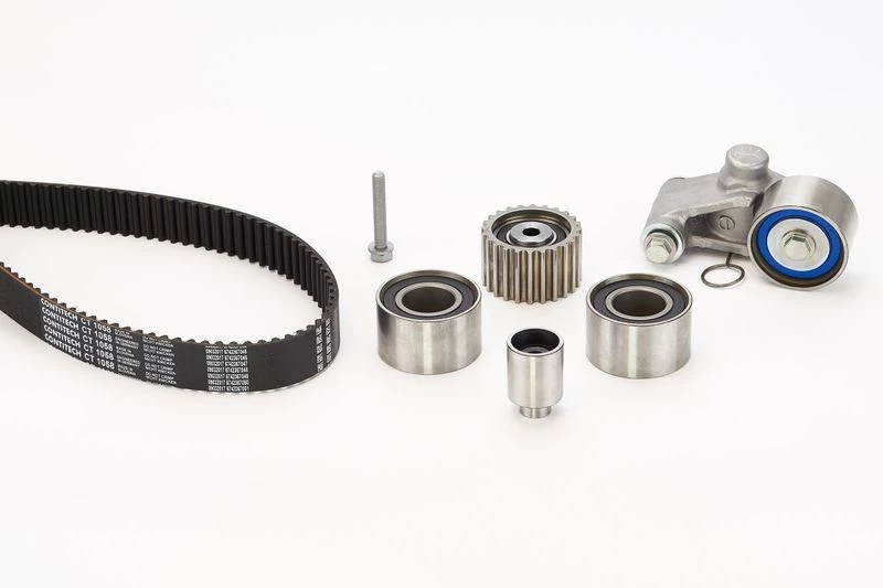 Ein Zahnriemensatz ist ein Satz von Komponenten, die zur Wartung des Motorsteuersystems verwendet werden. Er umfasst typischerweise den Zahnriemen, den Spanner, die Umlenkrollen und manchmal zusätzliches Kleinteil wie Schrauben oder Dichtungen.